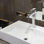 Bathroom facilities also include a separate toilet and a shower. There are a hairdryer and towels for guests' comfort.
